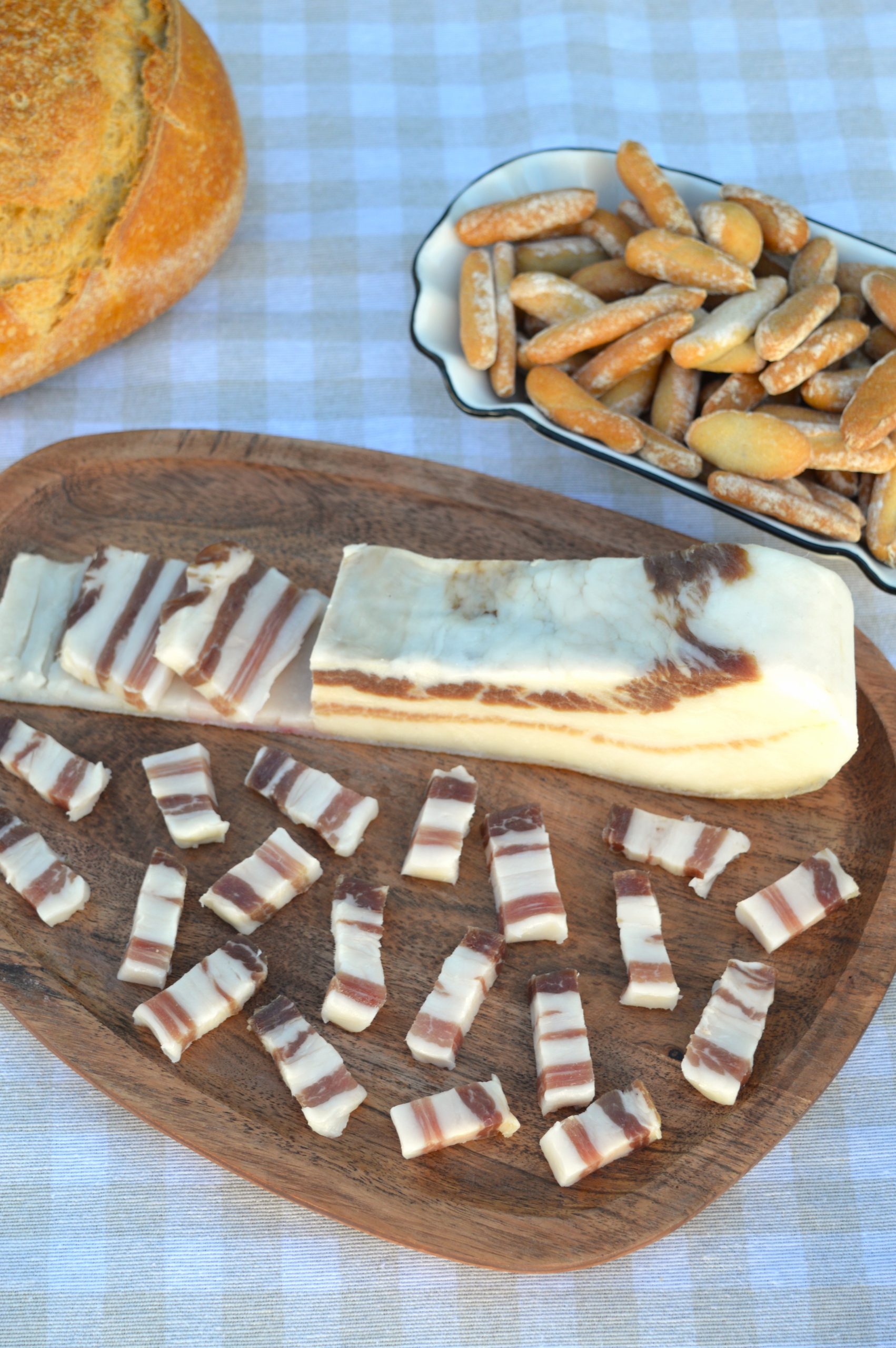 Puro sabor y textura sedosa. Esta panceta salada se elabora de forma artesanal con panceta de Chato Murciano y sal, sin más ingredientes, respetando al máximo una carne única en el mundo y de producción muy limitada.